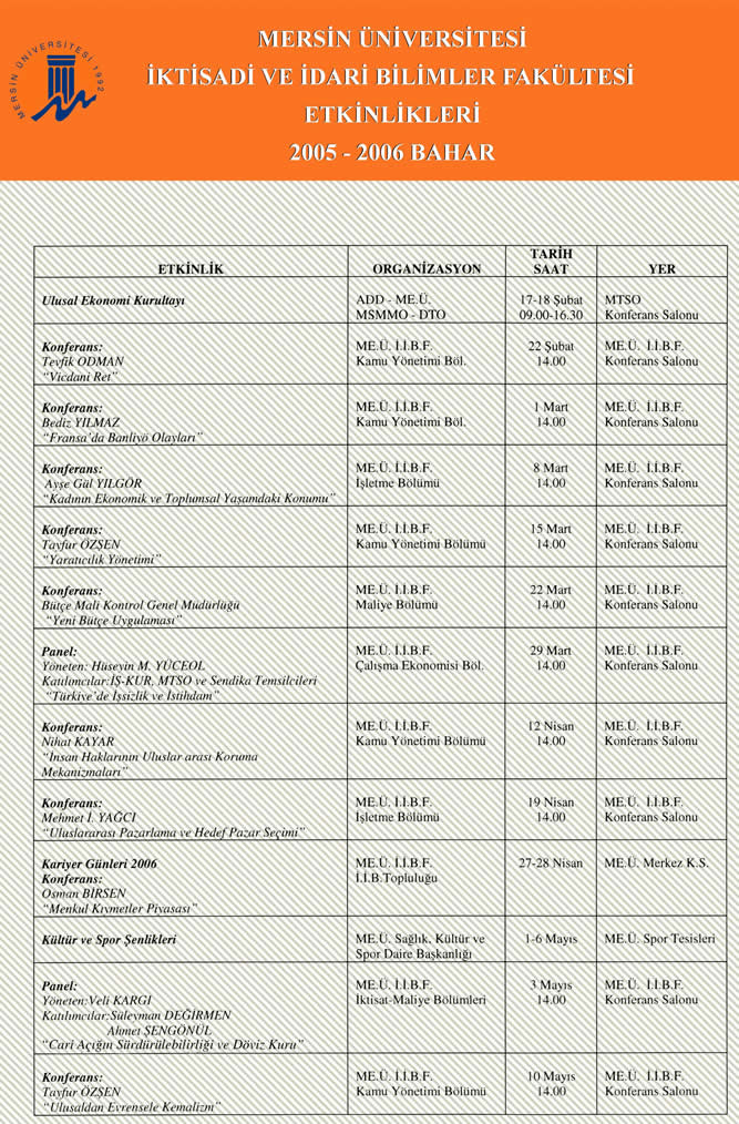İktisadi ve İdari Bilimler Fakültesi (İİBF) tarafından düzenlenen Çarşamba Etkinlikleri kapsamında, 29 Mart 2006 tarihinde Türkiyede İşsizlik ve İstihdam konulu bir panel gerçekleştirildi. Çiftlikköy Kampüsü İİBF Konferans Salonunda y