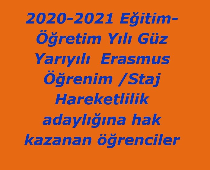 2020-2021 Eğitim-Öğretim Yılı Güz Yarıyılı Erasmus Sonuçları