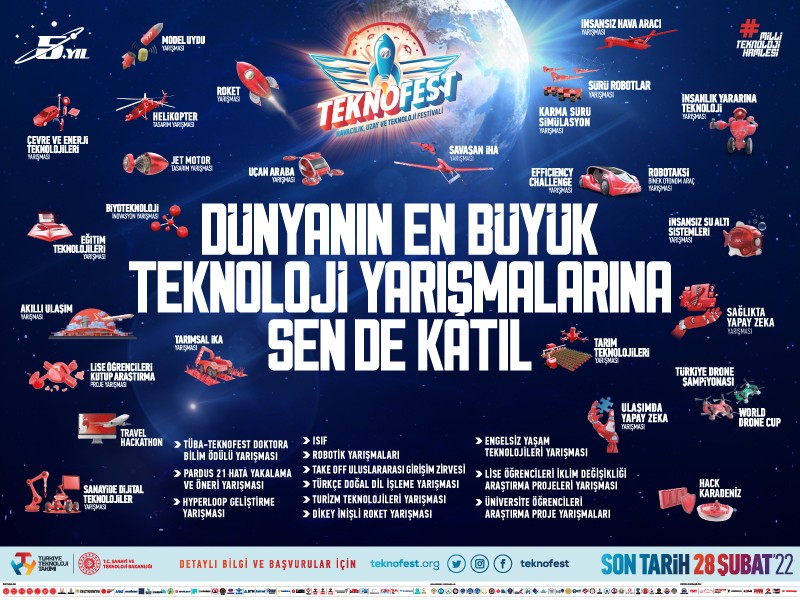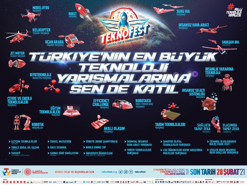 Dünyanın en büyük havacılık, uzay ve teknoloji festivali TEKNOFEST heyecanı devam ediyor.Bu heyecana ortak olup TEKNOFEST ailesine katılmak ve yarışmacılara sağlanan olanaklardan