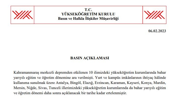 YÖK'ün duyurusuna binaen, 2022-2023 Bahar döneminde İYE faaliyetine katılacak öğrencilerimiz, faaliyetlerine Eğitim-Öğretim döneminin başlaması ile birlikte başlayacaktır.