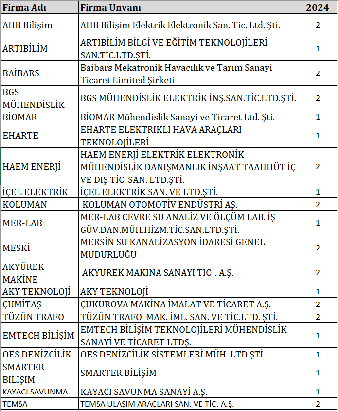 Elektrik Elektronik Mühendisliği Bölümü İş Yeri Eğitimi Firma Kontenjanları