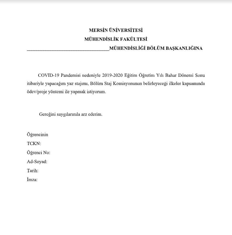 Yaz Staj Uygulaması Dilekçe Örneği
