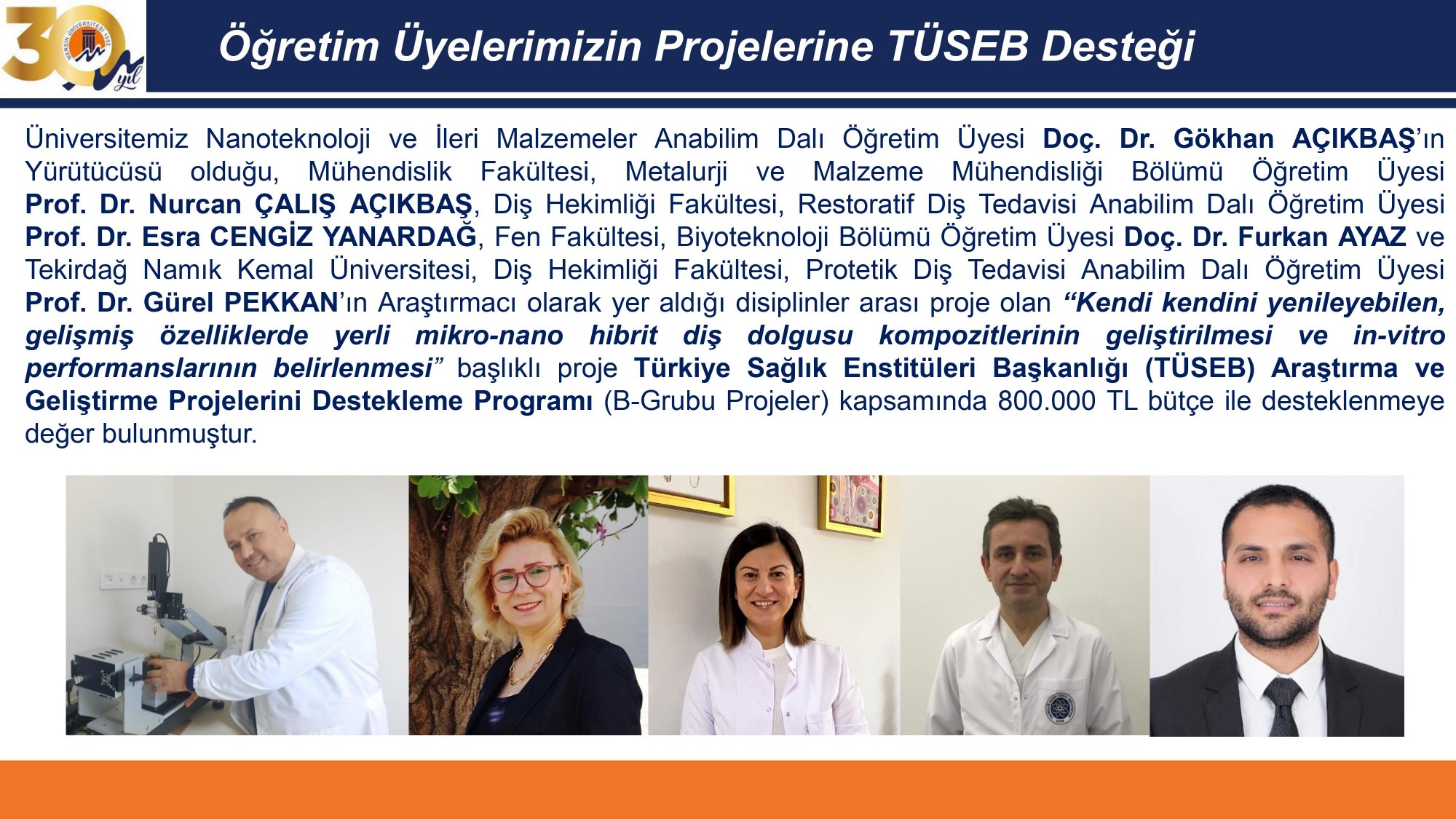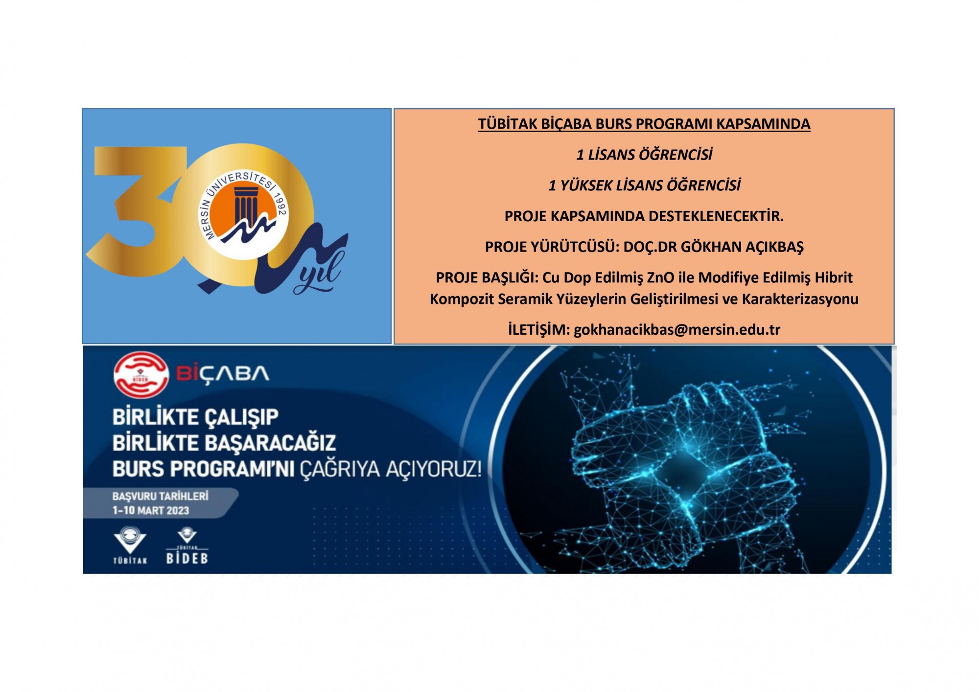 Mühendislik Fakültesi Metalurji ve Malzeme Mühendisliği Bölümü öğretim üyemiz Doç. Dr. Gökhan AÇIKBAŞ’ın danışmanlığında TÜBİTAK 1002 kapsamında desteklenen “Cu Dop Edilmiş Zn