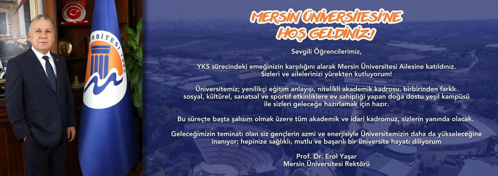Değerli öğrencilerimiz, Öncelikle sizleri Mersin Üniversitesi ailesinde görmekten mutluluk duyar ve eğitim öğretim hayatınızda başarılar dileriz. Üniversite hayatına uyum sağlam