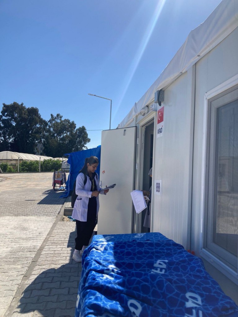 Öğrencilerimiz, proje kapsamında 09–24 Mart 2024 tarihleri arasında Hatay’da bulunan 15 konteyner kentte 696 haneyi ziyaret ederek araştırma verilerini topladılar. Ayrıca, ebelik eğitimleri süresince kazandıkları bilgi ve becerileri sahaya aktararak perinatal süreçteki kadınlara, bebeklere ve ailelerine gereksinimleri doğrultusunda danışmanlık hizmeti sundular.