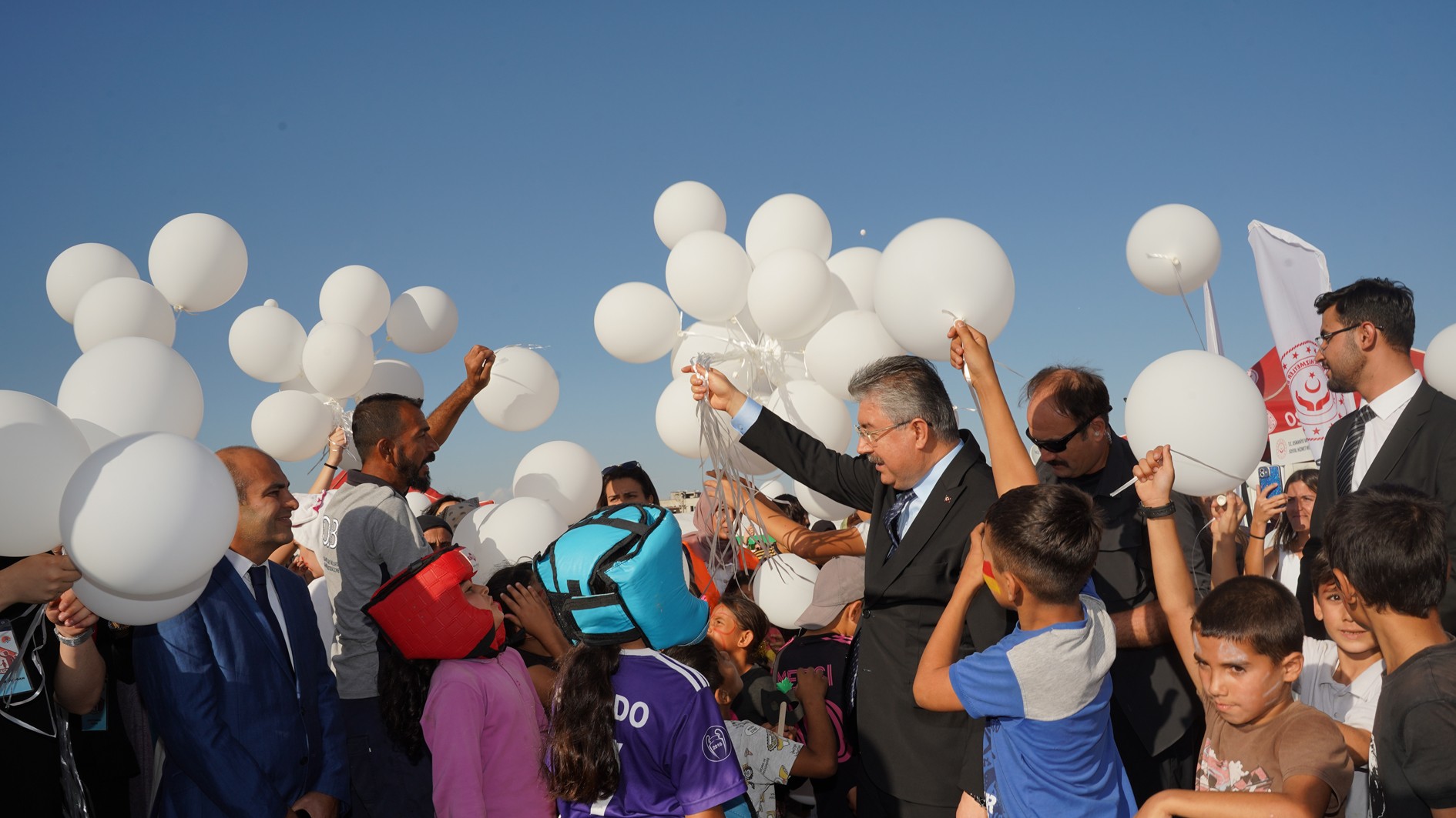 Etkinlik sonunda çocuklar, Osmaniye Valisi Dr. Erdinç Yılmaz eşliğinde gökyüzüne "Biz buradayız, yeniden başlıyoruz ve birlikte iyileşiyoruz" mottosunu taşıyan beyaz balonlar bıraktı.