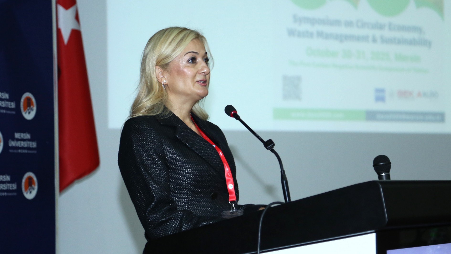 MEİTAM Müdürü Prof. Dr. Aylin Döğen ise konuşmasında sempozyumun geleceğe dair bir vizyonun ifadesi olduğunu, sürdürülebilirliğin artık bir tercih değil zorunluluk olduğunu, sürdürülebilirliğin bir yaşam kültürü olması gerektiğini, ekonomiden eğitime, teknolojiden toplumsal adalete kadar her alanda sürdürülebilir düşünmenin gerektiğini vurguladı. Prof. Dr. Döğen, “Döngüsel ekonomi, atık yönetimi ve sürdürülebilirlik, yalnızca çevre politikaları değil aynı zamanda gelecek nesillere onurlu bir yaşam bırakma sorumluluğumuzdur. Sürdürülebilir bir gelecek yalnızca teknolojinin değil, iş birliğinin, bilincin ve kararlılığın da eseridir. Bu doğrultuda, döngüsel ekonomiye geçiş sürecinde her birimizin birey, kurum ve toplum olarak önemli sorumlulukları vardır.” dedi.