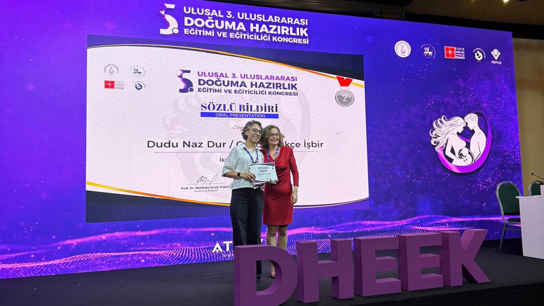 Üniversitemiz Sağlık Bilimleri Fakültesi Ebelik Bölümü öğretim üyesi Prof. Dr. Gözde Gökçe İsbir ve yüksek lisans öğrencisi Uzm. Ebe Dudu Naz Dur, 3. Uluslararası 5. Ulusal Doğuma Hazırlık Eğitimi ve Eğiticiliği Kongresi’nde “Doğumda Travma Bilgisi İçeren Destekleyici Bakımın Psikolojik Sonuçlara Etkisi: Randomize Kontrollü Çalışma” başlıklı bildirileri ile sözel bildiri dalında ikincilik ödülüne layık görüldü.