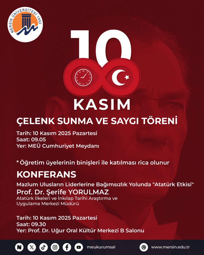 8 Kasım 2025 tarihinde Üniversitemiz Tıp Fakültesi, Anesteziyoloji ve Reanimasyon Anabilim Dalımız tarafından Mersin Üniversitesi Prof. Dr. Uğur Oral Kültür Merkezi'nde gerçekleştirilmesi planlanan
