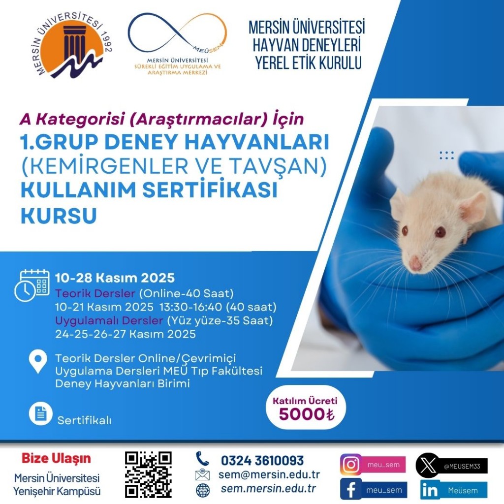 A Grubu Araştırıcılar İçin Deney Hayvanı Kullanım Sertifikası Kursu